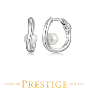SS ELLE "SIMPATICO" RHODIUM PLATED 18MM DOUBLE LAYER HOOP WITH 5MM WHITE SHELL PEARL
